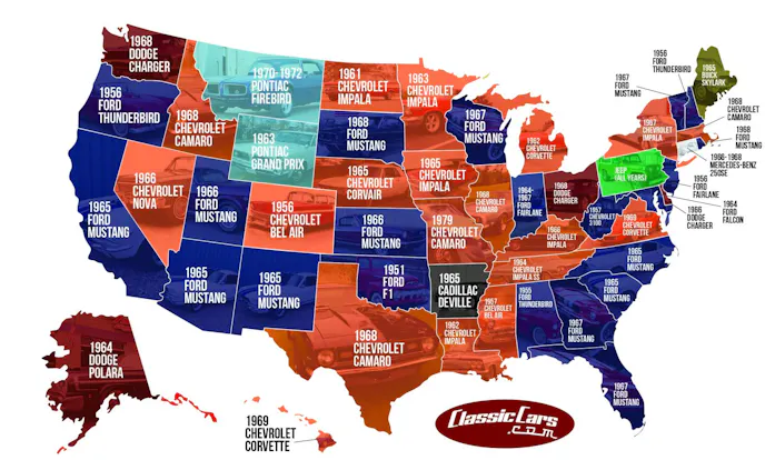 Ford’s legendary Pony Car ranked first in 13 states. — ClassicCars.comTo be fair, state-by-state, some states do prefer the Impala, Camaro, Corvette, Dodge Charger, or Ford Thunderbird, but overall, Ford Mustang has everyone beat!