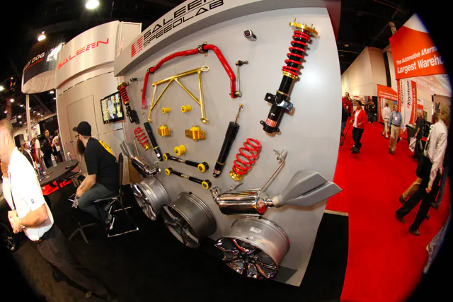 The SpeedLab is the parts division of Saleen, offering suspension kits and components, powertain parts, brakes, wheels and tires, body kits and upgrades, and a host of other stylish and high-quality, Saleen-branded products. Among the hot items displayed by Saleen at SEMA this year were their new 2005+ N2 coilover shocks, rear sway bars, rear lower control arms, and other components for the 2005-2010 Mustangs.