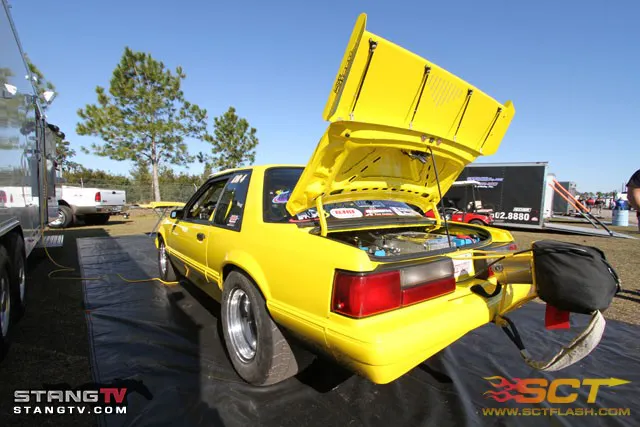 Evans’ Mustang, which weights in nearly 200 pounds light without ballast, has weight distributed around the car. And despite the common thought process that ballast should be in the rear, about 70% of that ballast is right in the middle of Evans’ machine.