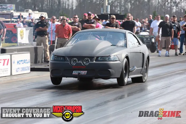 Also setting records on 275’s, there’s perhaps no radial-clad machine out there that does it with more finesse on a more consistent basis than Sean Lyon’s turbocharged ’93 Mustang. Lyon currently holds the NMRA record at a killer 7.53 seconds and if you want to beat him, you’ll have to flat outrun him, because the Panhandle Performance ride doesn’t struggle with traction very often.