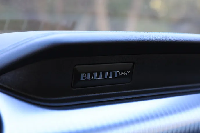 Inside the Bullitt theme continues with a cue ball-style shift knob, Bullitt badging on the steering wheel, and a serialized plaque on the passenger side of the dash. Buyers who opt for the optional Recaro seats also score Highland Green stitching.