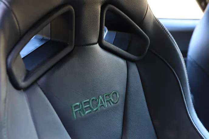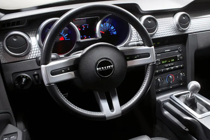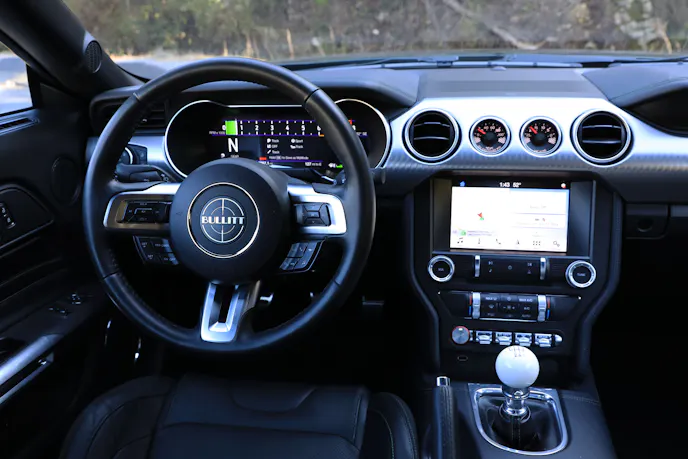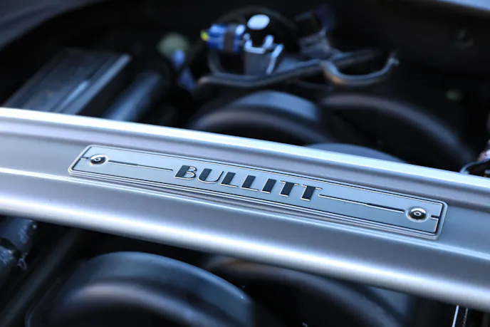Inside the Bullitt theme continues with a cue ball-style shift knob, Bullitt badging on the steering wheel, and a serialized plaque on the passenger side of the dash. Buyers who opt for the optional Recaro seats also score Highland Green stitching.