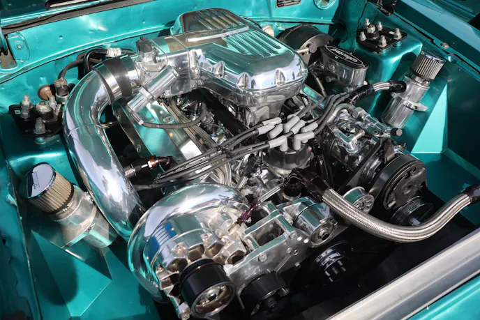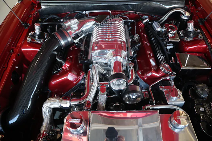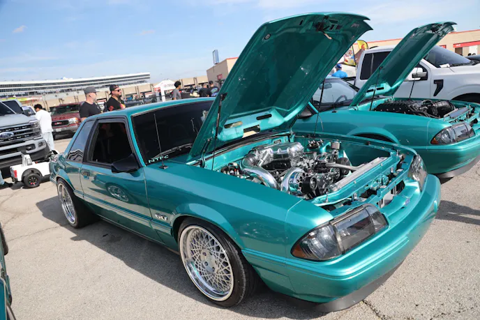 Rolling on a retro-style set of Strasse Wheels SC20 TRACK rims, this Calypso-hued machine checks all the boxes for fans of classic Fox Mustangs. Its 6.0-liter stroker is on full display in a cleaned-up engine compartment. The engine is treated to generous doses of chrome and polish, including the Vortech supercharger that delivers the boost via a Trick Flow Box-R short-runner intake. This classic coupe is a show-stopper in any decade.