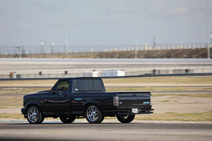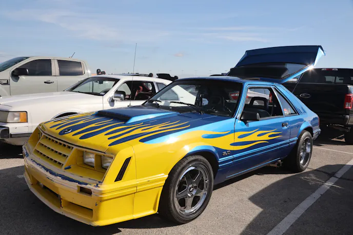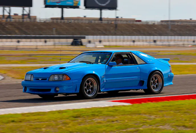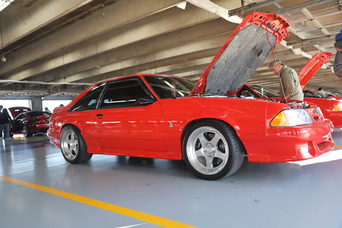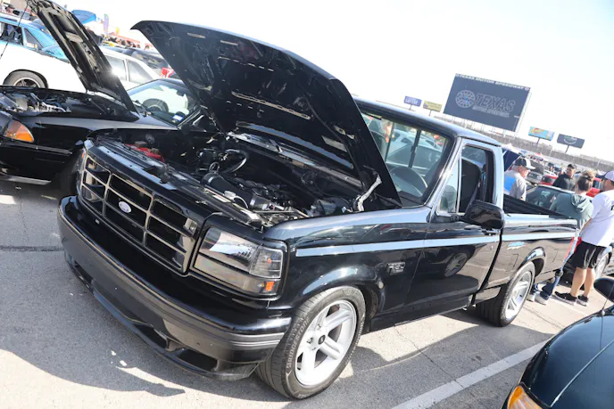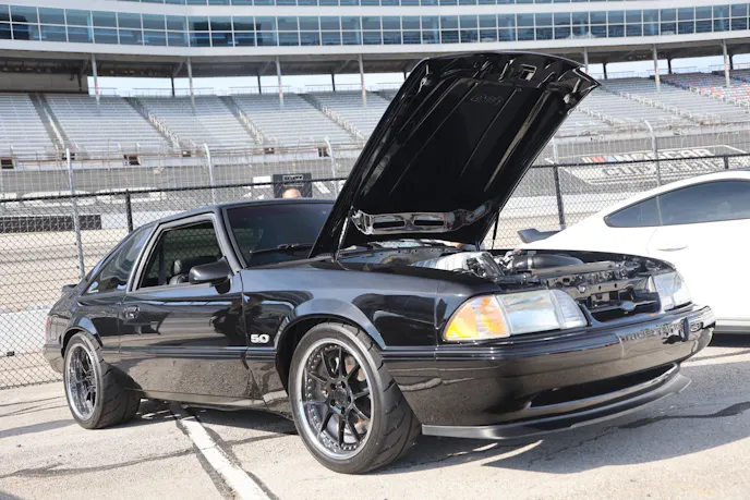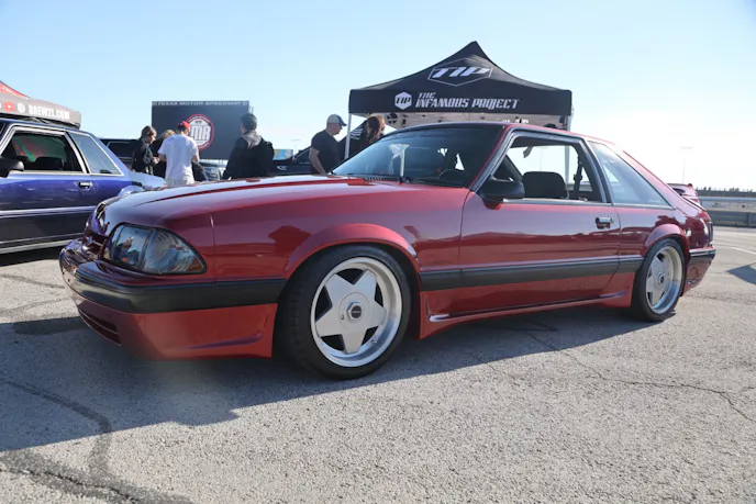 There were plenty of stock Cobras on the property at the LMR Cruise-In. This Fox looked the part of a period-correct, modified Cobra on the outside riding of Fikse five-spokes. Under the hood, however, it sports a thoroughly modern Coyote swap breathing through a Cobra Jet intake manifold fitted with a VMP Performance oval throttle body and a Cobra Jet cold-air intake. Ripping around the road course or the oval track at Texas Motor Speedway must have felt and sounded great as the throttle opened wide and air rushed through that massive intake.