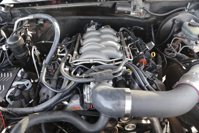 The formative years of Ford’s Special Vehicle Team delivered some memorable vehicles. The first-gen Lightning garnered a loyal fanbase when it debuted back in 1993, and the subsequent models created a sub-genre that thrived with several aftermarket modifiers dedicated primarily to these trucks. LMR still offers parts for these trucks, as evidenced by the fetching SVE five-spoke wheels on this truck. However, it is what’s under the hood that stopped us in our tracks. Gone is the 240-horse 351W, and in its place is a modern Coyote 5.0-liter engine. Seeing one of these in a classic SVT isn’t nearly as common as spotting one in a Mustang.