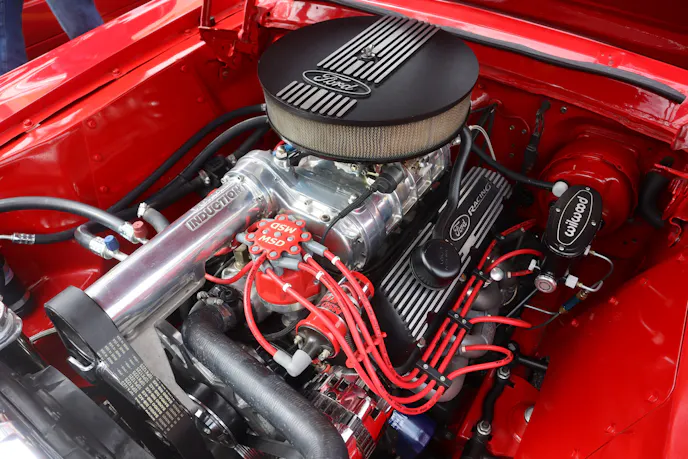 Fairlanes are gaining in popularity as project cars, and looking at Tim Vorick’s 1966 GTA, it is easy to see why. Looking mean and clean wearing that Emberglow paint, his tasty two-door is powered by a 360-horsepower, 390-cube V8 backed by a C6 automatic transmission.