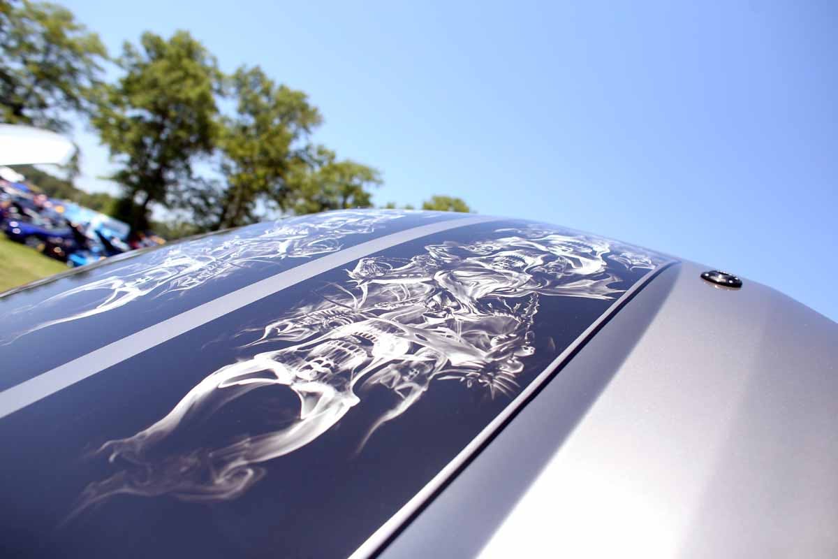 The daily-driven car, modified by Dwayne Gutridge and the guys at Big Daddy Performance, has been 11.30s in the quarter mile and topped the dyno out at 513 horsepower. The top and bottom sides of the hood have been the subject of an incredible design from Virtuair Airbrush Studios in Pennsylvania. As the car has won well over 100 trophies, there’s no surprise we stopped to drool.