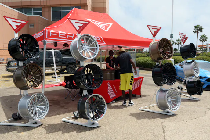 Mustang Week Texas is a great place to get reacquainted with brands you haven’t seen for sometime, and new ones you might not have heard of. A few examples that come to mind are American Racing, who has a lot of fresh new wheel designs including beadlocks for street cars and some late model Mustang specific wheels that fit the lines of S550s beautifully and even give a nod to some special OEM wheels without being a carbon copy. If you’ve been reading Ford Muscle, then you know it’s easier than ever to do a Godzilla swap for some raw, naturally aspirated, big-cube horsepower. Late Model Engines came to the show with a number of solutions for dropping your salvaged powerplant into your chassis, such as a billet intake for four-barrel throttle body or carb, valvespring packages, valve covers, and oil pan.