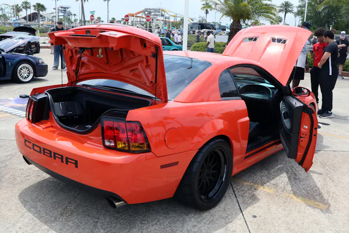 Following a promising first day at Moody Gardens, the week closed out with a bang and then a storm to wash away piles of rubber, memories of an incredible time in Galveston, Texas for the 2026 Mustang Week Texas, presented by LMR. The folks at Monster Energy also pitched in to make sure the week ended on a high note, responsible for the incredible burnout pad – dubbed the Monster Energy Zone – where not only the burnout competitions took place, but drifting, awards, special announcements and presentations, and the Monster freestyle motocross team exhibitions. While Saturday did hold the Pro Burnout competition, there was plenty of action outside the Monster Energy Zone because it was Car Show day! Mustangs had their day in the sun, to be looked at carefully and ranked based on overall appearance for their year or submodel.