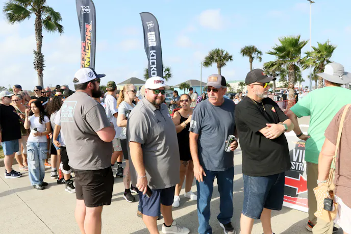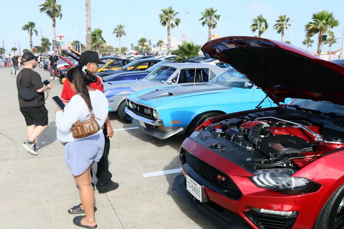 The 2026 Mustang Week Texas Kick-off Party, presented by LMR, packed them in at the Fish Tales parking lot at the Historic Galveston Pleasure Pier. Lines formed at registration as event-goers exchanged their email codes for wristbands and other parts of their package.