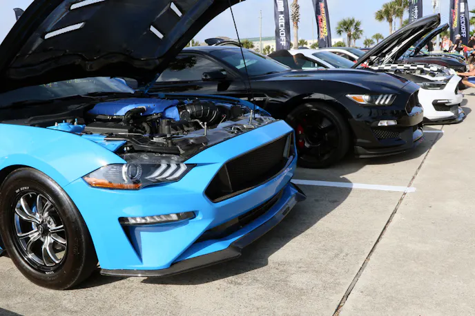 While wrapping up a new Dark Horse build, House of Boost brought several other vehicles to Texas including the FX build. It’s one of the more noticeable S650s out there with unique teal wrap and white wheels. Built in multiple phases, the car has progressed from early supercharger setups to now a ProCharger F-1A-94, serving as both a test bed for new S650 parts and a flagship representation of the shop’s capabilities. Unlike some other shop builds that were purely meant to dominate at the track, the FX has a style and attitude of its own that fits events like Mustang Week Texas like a glove.