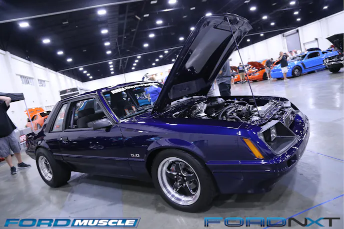 Quality Fox Mustang projects have always been drawn to Mustang Week and many of them were on display in the convention center. However, there were several nice examples on the show field as well, including Scott Hartrick’s 1988 Mustang GT. Known as FivePointOCD on Insta, we can see why. It has sleek styling, a super-sano interior, and under the hood its single-turbo small-block is the definition of clean.