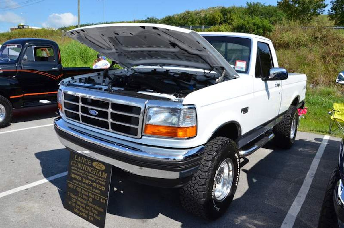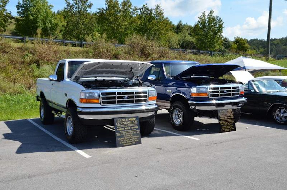 While Lance Cunningham is a name more synonymous with selling new Roush Mustangs, he brought out two classic early ’90s Ford trucks for everyone to see at Rod Run. On the left, a 1995 short bed F150 with a 5.0L engine and a manual transmission. On the right, a 1996 Eddie Bauer Edition Ford Bronco. Both trucks are very tastefully modded and both are in immaculate condition. These ’90s Ford trucks are showing up in force at classic car shows around the country as of late; are they the next big thing?