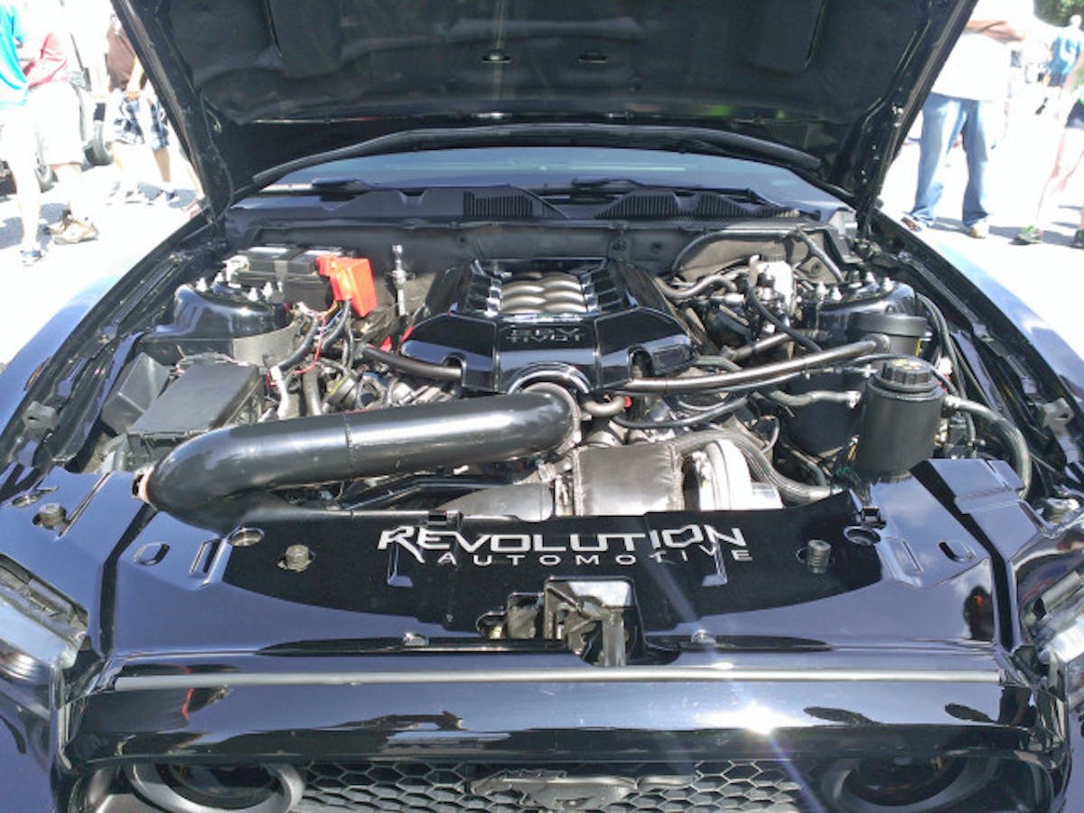 There was a dyno contest held at varying points throughout the day, ultimately won by the last car on the roller, Dasan Holloway’s badass 2014 GT from Rockville, Maryland. Dasan’s car is a grudge machine, so he wouldn’t tell us how fast it’s really been in the quarter-mile, but he did reveal that the “published numbers” are 9.60s. He spun the roller to 926 horsepower while spinning the tires, achieved through the use of a 76mm turbo kit atop a Ford Racing Coyote Aluminator engine putting the power to the ground through a built 6R80 automatic transmission. The car was built and tuned by Revolution Automotive.