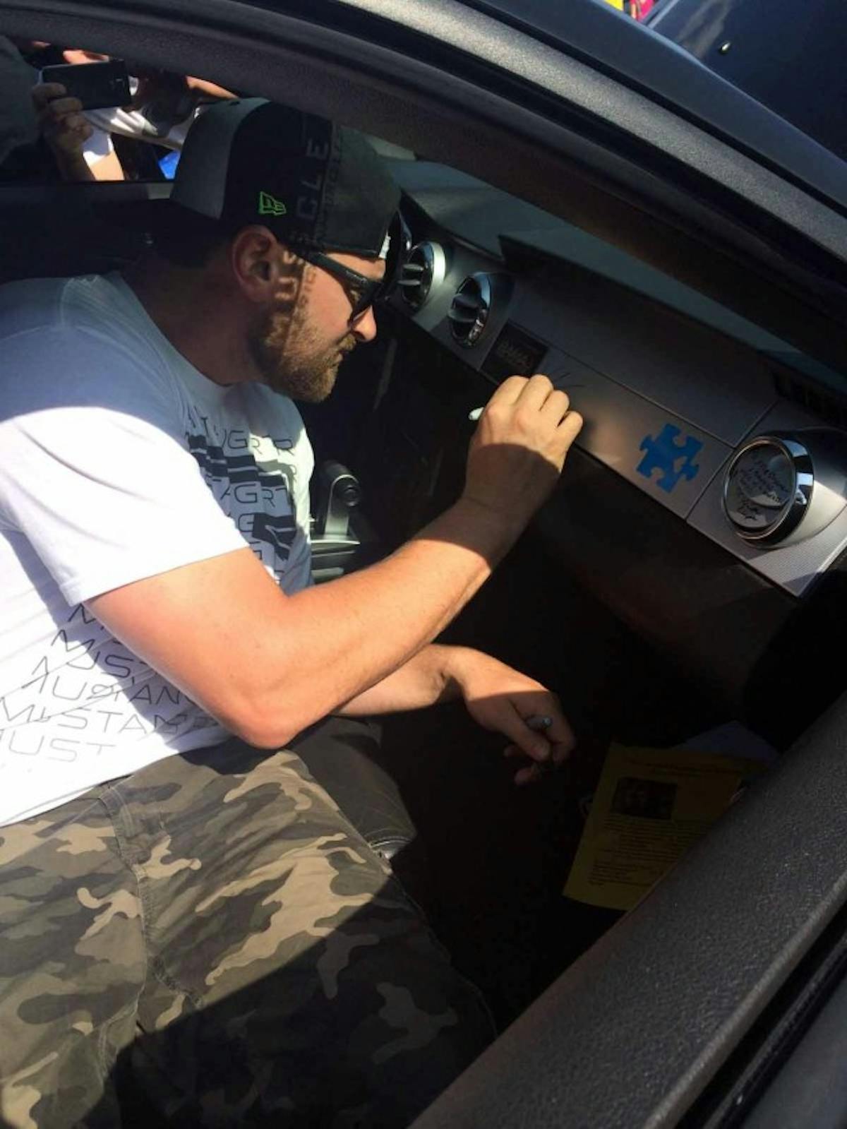 It was delivered the night before the show, and Jessica and Shane stayed up all night to prep it for show duty. The highlight of their day was Vaughn making an appearance to put his stamp on the dash.