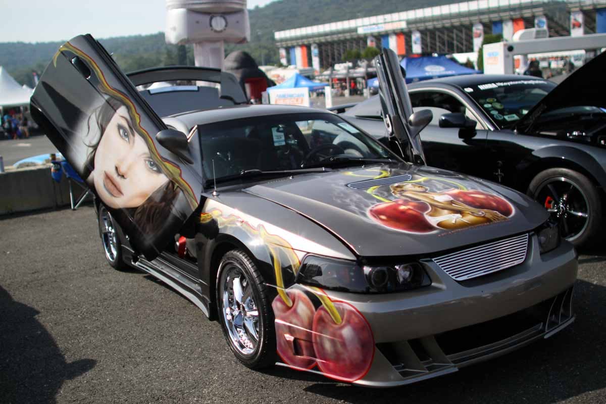 We also found the wild creation of Bloomsburg, Pennsylvania’s Ken Green, entitled Cherry Poppin’, which boasted a wild paint scheme that carried throughout the exterior and interior of the car. It’s a ’99 GT that has a Nitrous Express 100 shot of nitrous under the hood, a set of BBK shorty headers and X-pipe, and Flowmaster American Thunder mufflers to round out the power enhancements.