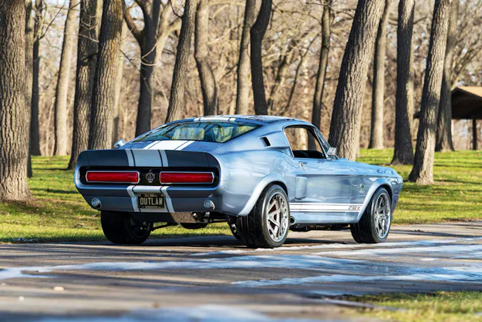 Power comes from a supercharged 5.4-liter V8 from a 2012 Shelby GT500 backed by a TREMEC TR6060 six-speed manual transmission. It’s a combination that delivers instant torque and pulls strongly to the limiter, delivering modern performance without dulling the edges that make a Mustang fun to drive. With just 200 test miles since completion, the drivetrain remains fresh and ready to run.