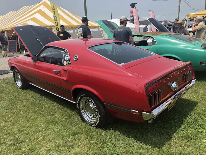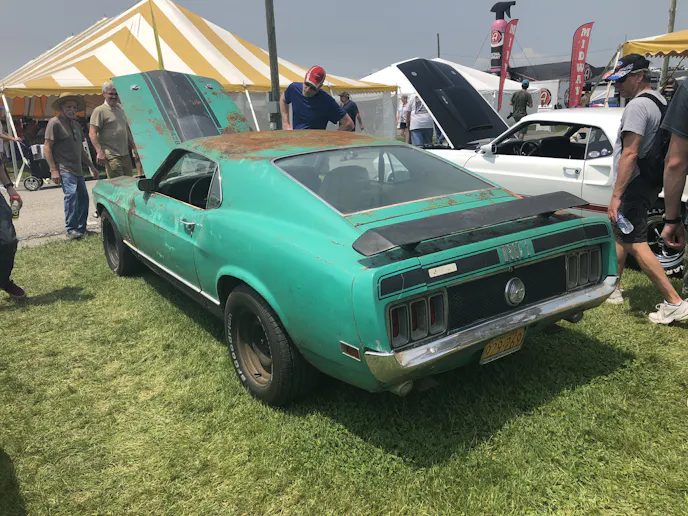 We also found an incredible 1969 Boss 429 that had a great back story. The owner’s father bought it new, and drag raced and drove it back and forth to work for many years before it retired to a barn. There, it encountered a tornado, and was damaged by a falling roof, but it has since been repaired, and continues to be driven and raced. It sat just down the row from a 1970 Boss 429 for sale (in flawless condition) for $250,000, making its story even more impressive.