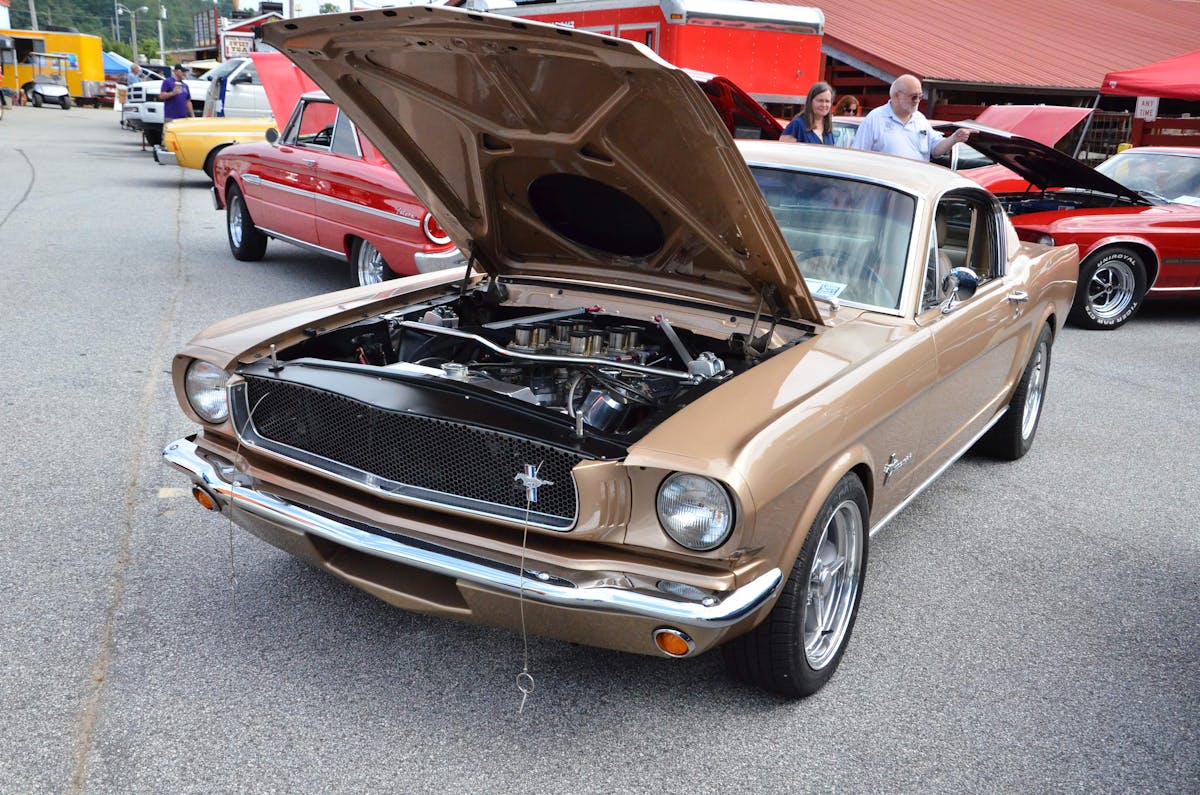 So, let's face it guys. Any time you can get your significant other involved in this crazy car hobby, it is a win. Lyman Holland, the owner of this beautiful 1969 Mach 1 Mustang has managed to do just that. We have come across Mr. Holland's four-speed Mach 1 at several shows before, but now he has another Pony along for the ride: his wife, Eileen Holland's gorgeous orange 1966 coupe. Lyman and Eileen picked up her Mustang back in March at Ponies In the Smokies in Tennessee, and have been enjoying them together ever since. Lyman's Mach 1 is powered by the original 351 Windsor, while Eileen's coupe still has the original 200 ci six-cylinder in it. Both are very nice original examples, and both win awards wherever they go!