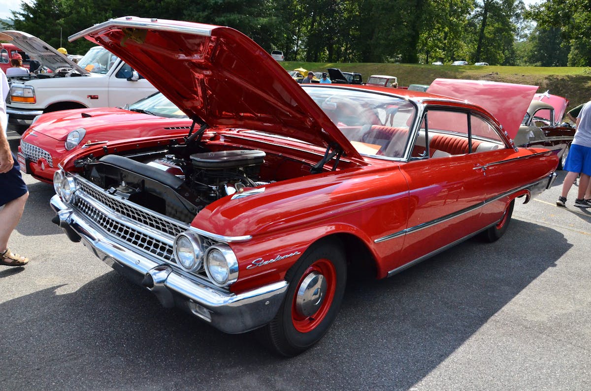 Tucked away in the small mountain lake town of Hayesville, North Carolina, are two new car dealerships, one Ford and one Mopar. Both share the namesake of avid classic Ford collector Jacky Jones. Oddly enough, it was the Mopar dealership, co-owned by another avid car collector in his own right Ed Ashe, at which we found ourselves last Saturday night for its annual customer appreciation cruise-in. With Jacky and Ed heading things up, this cruise-in never disappoints, with plenty of cool and rare machines on display. You never know what you will see or what the highlight of the night will be. As we walked the rows of cars under the setting western North Carolina sun, we quickly noticed a trend with several of the Fords in attendance: big-block Ford power and lots of it! There were 390s, 406s, 427s and more! Everywhere we turned, we saw another big-block Ford – so many, in fact, that we decided to dedicate our coverage to them. Check it out!