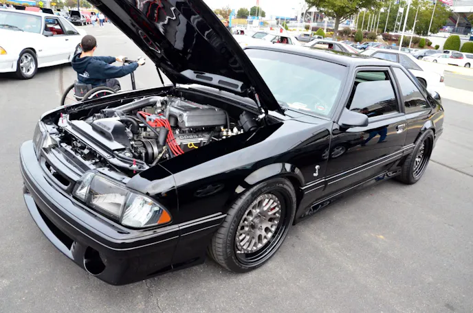 A returning star at Foxtoberfest, “War Admiral” remains one of the most complete and powerful Fox Mustangs around. Owned by Tom Schwenzer, the car is a four-digit-horsepower machine courtesy of a turbocharged pushrod combo. Its blend of power, craftsmanship, and presence helps it hold its own amid a new generation of high-end Fox Mustang builds.