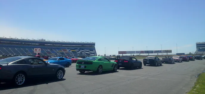 It’s not raining! Happy Easter everyone although it feels more like Christmas. Courtney woke up at 6:30 am and ripped open the curtains to see sunshine and blue skies and then proceeded to do a happy dance! Today the plan is to pack as many Mustangs as possible into the Charlotte Motor Speedway before a drone will fly over and document all the cars that made it to the celebration.