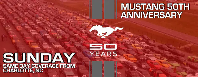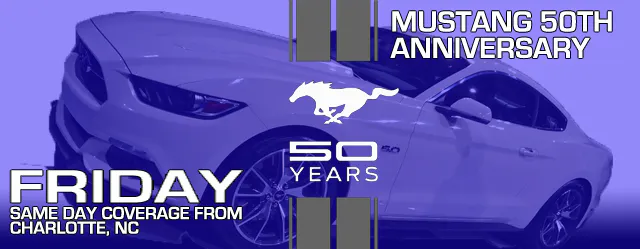 It’s the biggest birthday party in automotive history, the Mustang 50th anniversary from Charlotte, North Carolina. StangTV has dispatched Team Mustang Girls to cover all the action and events of this once in a lifetime event. 50 years ago today, Ford unleashed the Mustang on the world, knowing it would be a hit, but with no way of knowing it would become such a dominate force in the auto industry, a figure in pop-culture, and a beloved car for generations of the blue oval faithful. Be sure to check back here each and everyday for the latest updates, photos, and info on the hottest car party on the east coast.