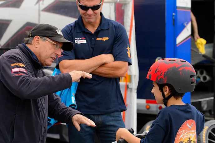 Mustang Week had its 2015 GTs here at the speedway to show off for everyone, and hopefully make a sale, or 7. Mustang Week's Mike Clay designed the black and blue model using parts and pieces from Latemodel Restoration, including SVE Series 3 wheels and suspension upgrades. The wrap was done by Bullitt Auto Detail. The Guard metallic edition was designed by Palmetto Ford's Tony Barron, and features Classic Design Concepts wheels, and an RTR suspension and exhaust. The smaller scale Mustang Week car was presented to Caleb Cook, as part of a team effort between Mustang Week organizers and the Make-a-Wish Foundation. Caleb was seen tooling around the speedway in his car, taking in the day's action.
