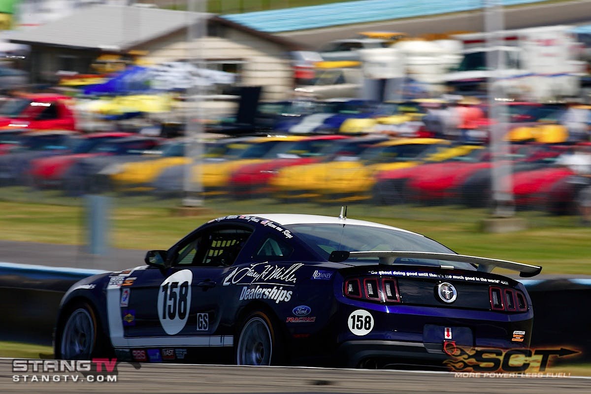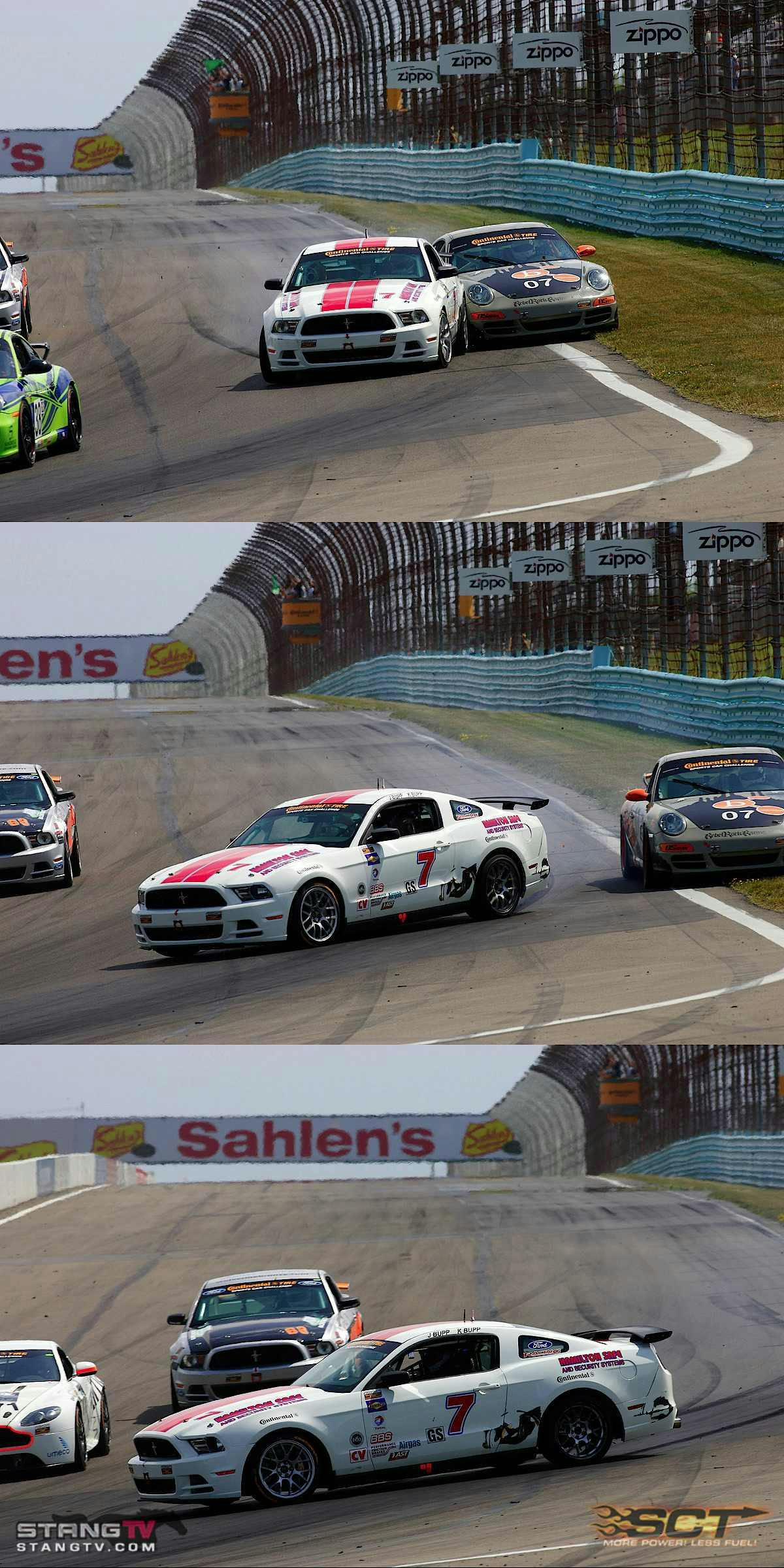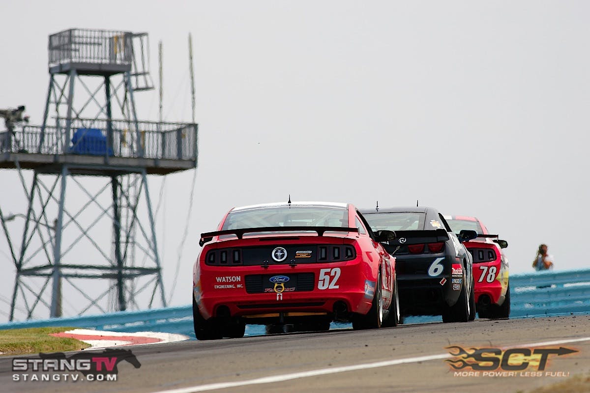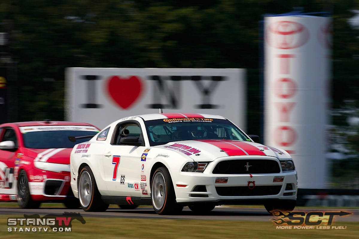 The two Porsches of Rum Bum Racing and BGB Motorsports have been all but unstoppable since the series’ second race at Barber Motorsports Park, where Rum Bum Racing took their first win. Mustang teams came into Watkins Glen hoping that the course’s fast layout would favor their cars’ torque. But in practice the fastest Mustang was the #61 Roush Performance Mustang Boss 302R of Billy Johnson and Jack Roush Jr. They were only sixth quickest, about 0.7 seconds behind the fastest car in practice: Bryan Sellers and Mark Boden in the #46 Fall-Line Motorsports BMW M3. In qualifying, Tonis Kasements put the #55 Multimatic Motorsports Aston Martin V8 Vantage on pole. Jack Roush Jr.’s Mustang was seventh, the best Mustang of the field. The Mustang teams had their work cut out for them if they were to overcome the speed of the Aston Martins, Camaros, Porsches, and the Nissan 370Z ahead of them.