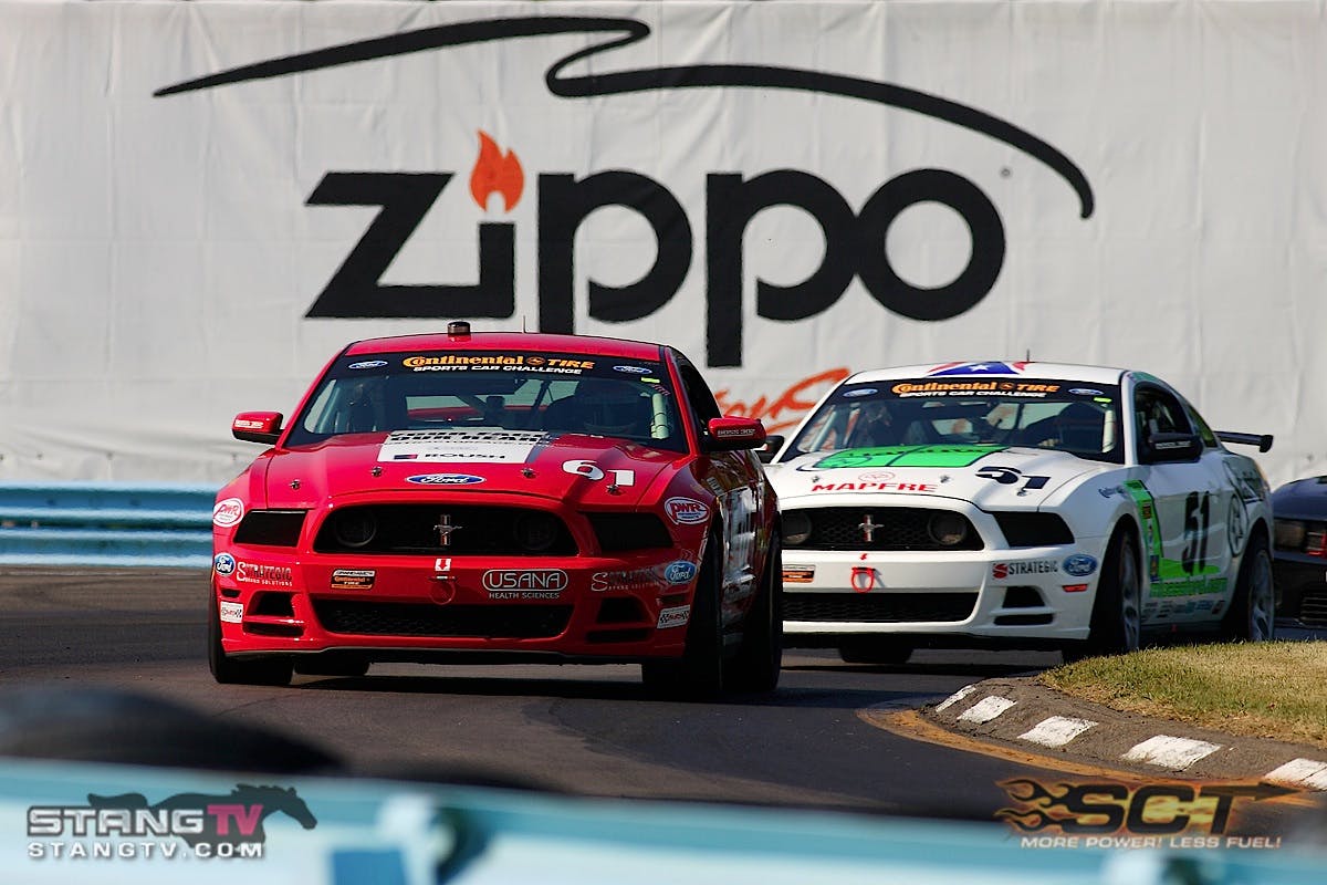 With just over an hour remaining, Matt Plumb, who took over driving duties from Nick Longhi in the #13 Rum Bum Racing Porsche, was the first to top of his fuel tank for the run to the end. The call put Plumb ahead of the others in fuel strategy, which would prove pivotal toward the end of the race. Shortly thereafter, the top two drivers (Billy Johnson in the #61 Mustang and Lawson Aschenbach in the #01 Camaro) followed suit and headed to the pits for the last time. Mike Skeen, behind the wheel of the #14 Nissan led the race until an ST-class BMW spun into the path of the speeding Nissan. Skeen had nowhere to go but plow into the BMW and destroy the Nissan.
