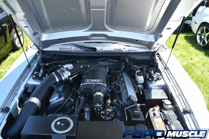 In 2003 Ford’s Special Vehicle Team launched a landmark vehicle the — 2003 SVT Mustang Cobra. Codenamed the Terminator, these machines brought factory supercharging, six-speed manual transmissions, and independent rear suspensions to the Mustang. Their ready acceptance of modifications made them wildly popular with enthusiasts, and this silver example stood out with its clean looks and that big VMP Performance TVS supercharger atop the Four-Valve 4.6-liter V8.