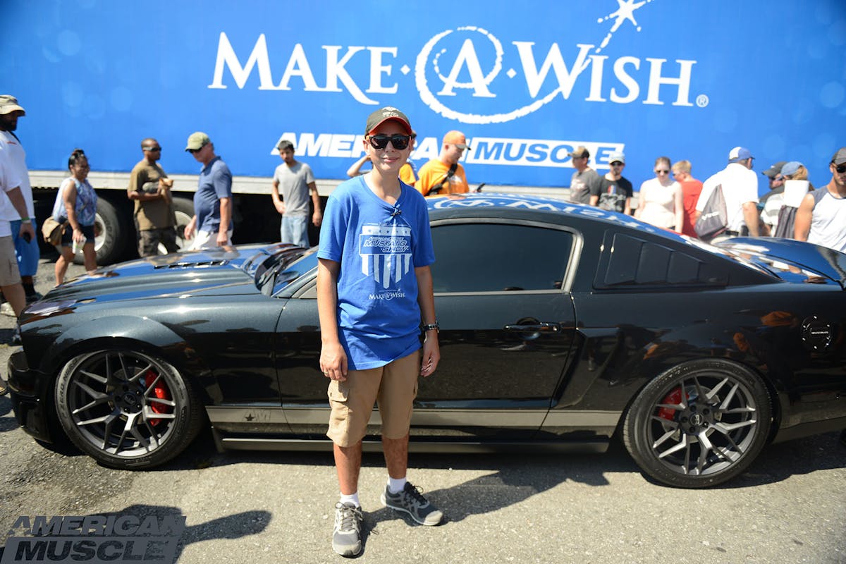 There wasn't a dry eye in the house during the emotional unveil of the AmericanMuscle Make-A-Wish project car to Austin of Chicago, Illinois. Austin's one wish was to have the team at AmericanMuscle help turn his rather rough 2005 Mustang V6 into a proper thoroughbred. The AM team went above and beyond the call of duty. Starting with an overhaul of the bodywork and respray, then followed by an adjustable airbag suspension was the key; as well as various bolt-on performance upgrades (including a particularly tasteful sounding exhaust system).