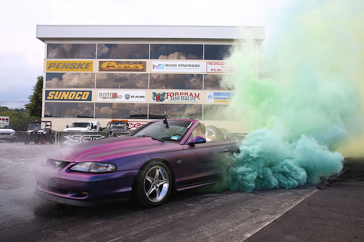With numerous competitors cranking out enough smoke to completely obscure their rides in the burnout box, it was obviously tough to choose a clear winner. In the end, it was Alex’s SN95 GT convertible that took home the trophy. No doubt that the Back to the Future-style flaming skid marks he left behind had something to do with him being able to stick out amongst the worthy competition, though.