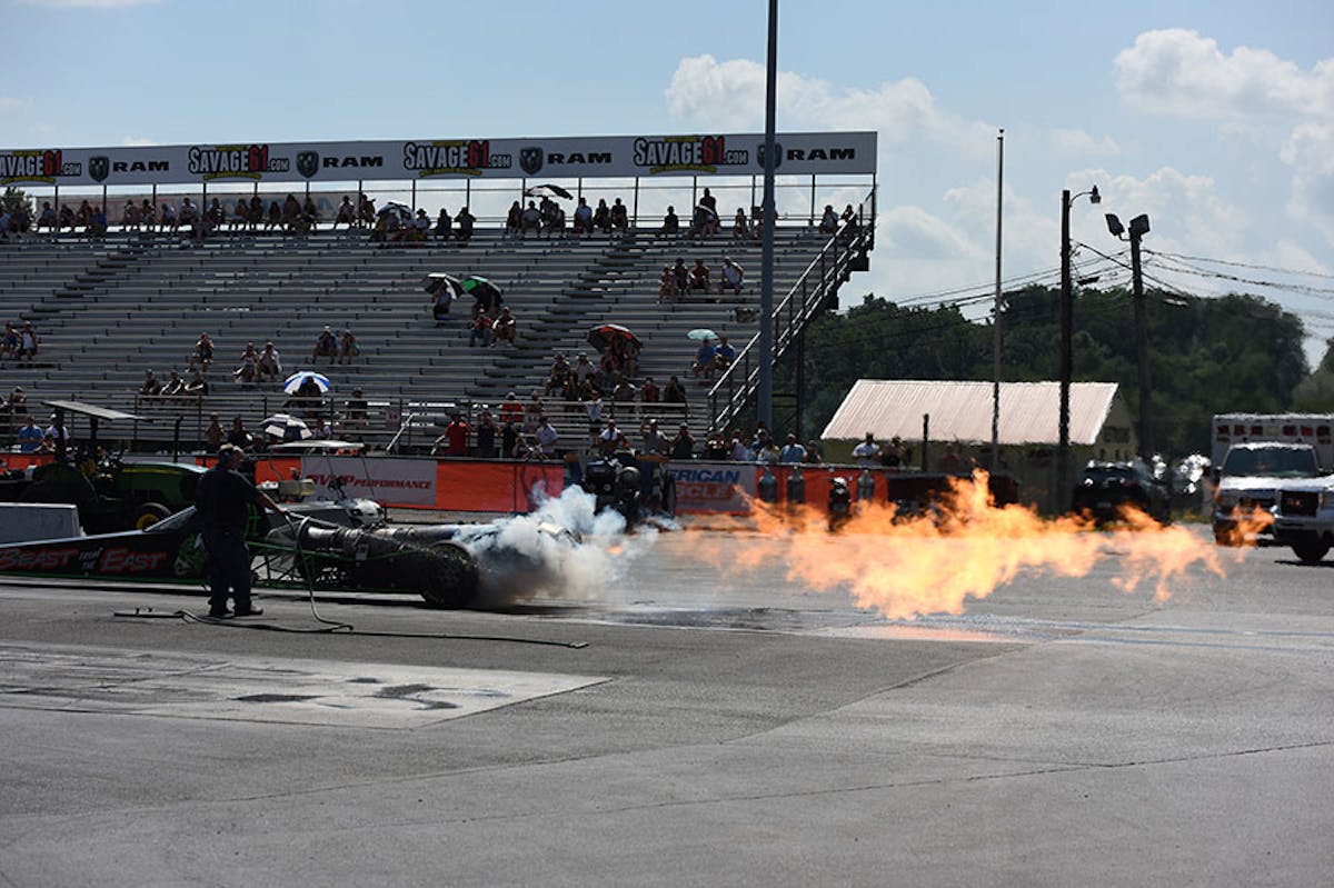 This jet-powered dragster knocked at a 5.4 second quarter mile at more than 290 miles per hour, shaking every window and loose filling in the vicinity on its very brief trip down the track.
