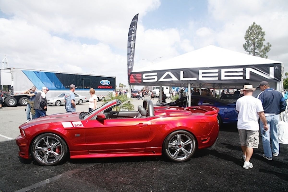 As the presenter of the show, Ford was there in force with a big display highlighting the brand new 2015 Mustang, a bright silver one on a turntable in front of a bank of computers where show-goers could sign up for a chance to win one of their own. This Ford display was probably the most crowded part of the show, for obvious reasons, but it was also the nicest with its grassy area setting. In this same area were several Ford-related celebrities signing autographs and talking to the crowd, including perhaps the most prolific and famous Ford racer of them all, Parnelli Jones. Also on hand was sports car racer Scott Pruett (who won both Sebring and Long Beach this year in a Ford EcoBoost/Riley), Trans Am hero George Follmer, legendary drag racers Butch Leal and Larry Knapp, Formula Drift Champion Justin Pawlak, and The First Lady of Racing, Linda Vaughn. It wasn’t just the racing representatives walking the show however—Bill Ford III was on the grounds checking out examples of his family’s handiwork. Ford Racing had an obvious presence with a big rig and a few race cars, and joining them were displays from Shelby, ROUSH, Saleen, Nitto Tire, and several others.