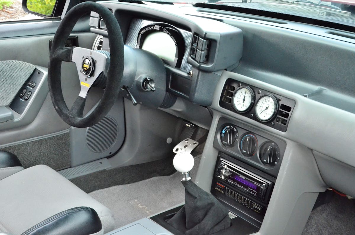 What’s cooler than an Saleen SSC? A Saleen SSC that’s modified and driven, of course. Terry Wiedman’s 1989 fits both of those categories. It is loaded with performance mods, including a Boss-block 347 stroker with aluminum heads, a custom-ground blower cam, forged internals, a ported Saleen intake, a Vortech T-trim supercharger, and a healthy shot of methanol injection. All in all, it delivers 609 horsepower to the rear wheels. Yes, this is one wicked-cool and fast Fox.