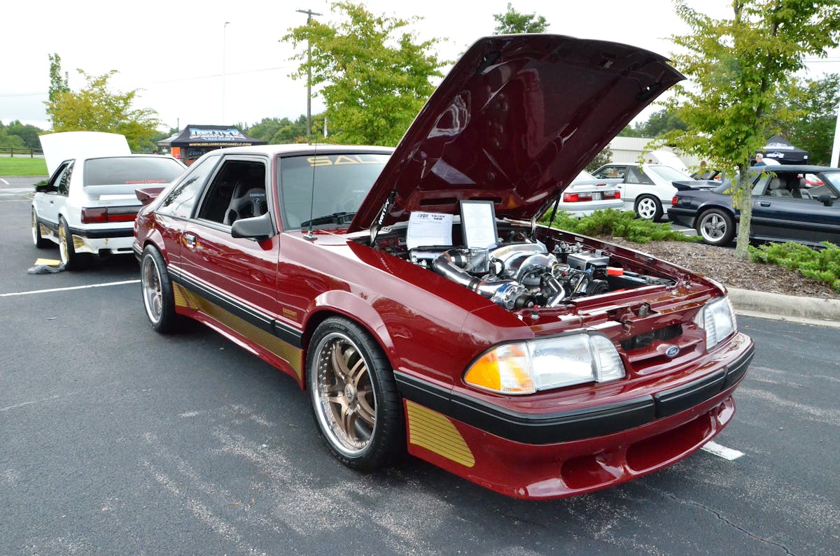 Dennis Fahey’s 1988 Fox Saleen is one of the cleanest we have ever run across. Painted in beautiful red with grey and silver accents, this car is easy on the eyes. If there is a flaw on this one, we did not find it.