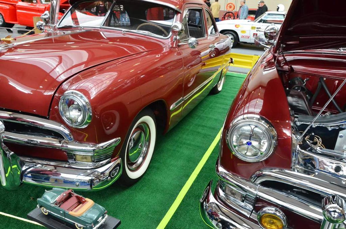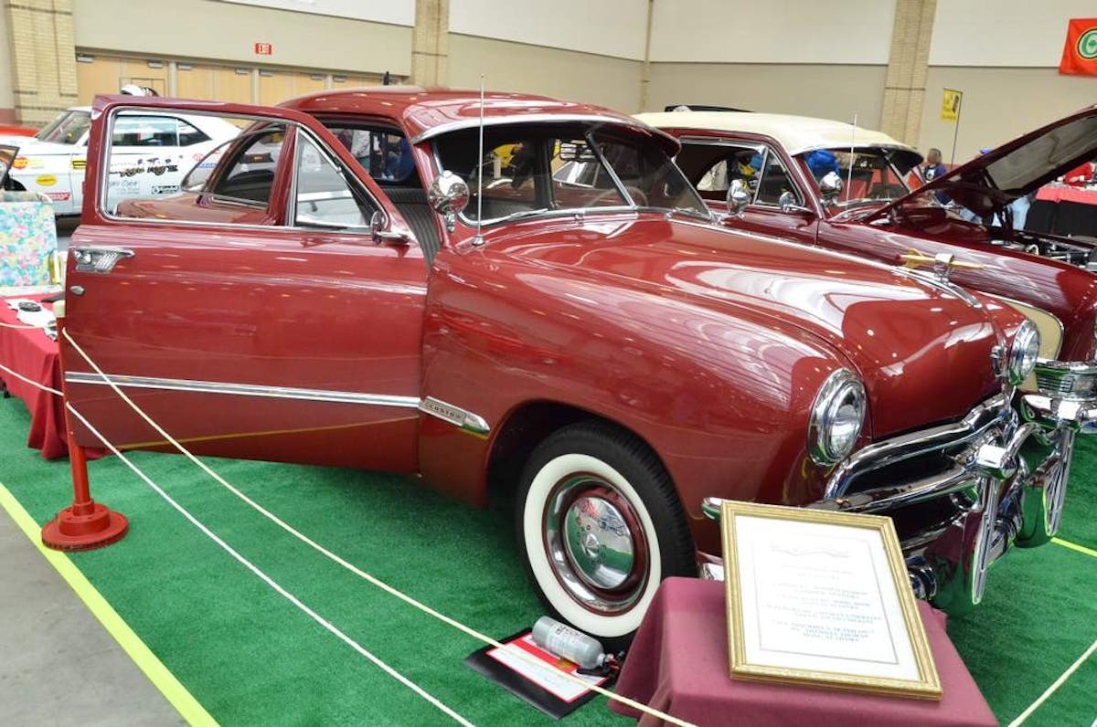 The "Shoebox" Ford has always had a timeless look. Sherrel Thomas of Boaz, Alabama, brought out two cool examples to the show. The solid-maroon car is a 1950, while the two-tone car is a bit of a custom creation. It features a 1949 body; a 1950 grille and trunk lid; 1951 Crestliner trim; 1949 convertible interior; a 1950 Crestliner dash; and a 1949 Mercury engine. All these parts come together to make one classic Ford.
