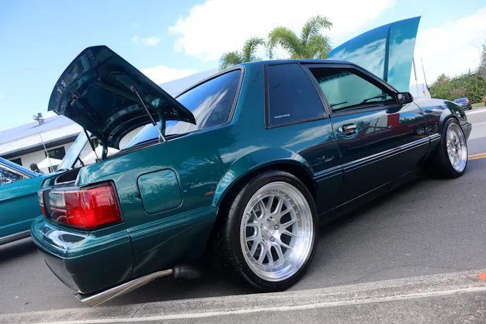 While the show was filled with rare classics and high-end exotics, your author loves Fox Mustangs — and this one really stood out. James Gribble’s 1988 Mustang LX. Riding on a full QA1 suspension, it sits just right. From the clean interior to the custom trunk and audio system, it is a great representation of the breed. Even cooler, it still sports pushrod power under the hood, right down to the GT-40 intake and rumbly Ford Motorsport B-cam.
