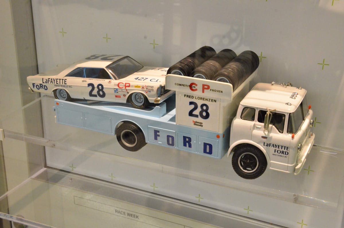 Next it was time to put the ponies in the wind for the ride across town to Uptown Charlotte and the NASCAR Hall Of Fame. Even a rainy day could not keep the Saleen owners from getting their cars out and enjoying them. Once inside the NASCAR Hall Of Fame, the members toured the facility. It featured plenty of Ford memorabilia, including a nice display in this year’s Hall of Honor featuring one of the newest Hall Of Fame members, legendary engine builder, Robert Yates.