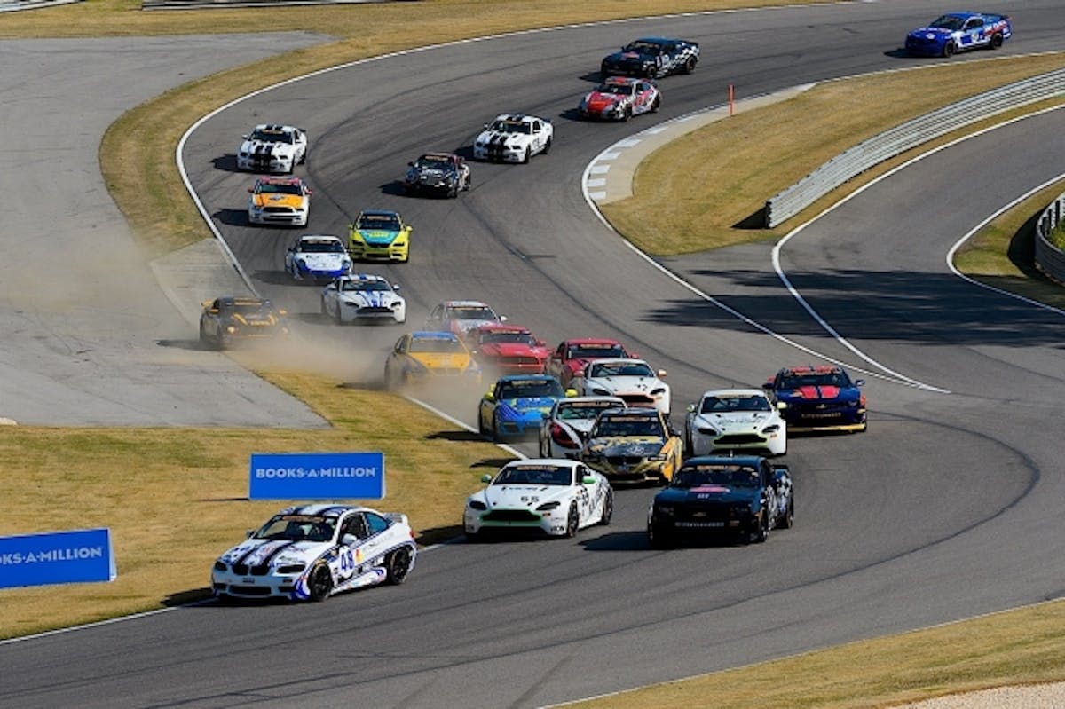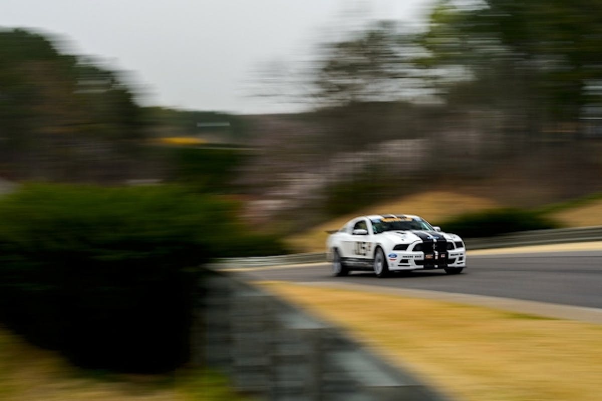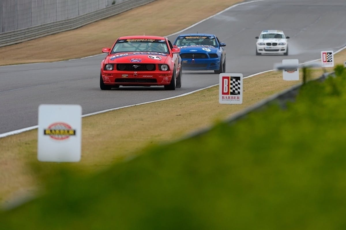 Barber Motorsports Park’s flowing layout was designed with motorcycle racing in mind. The short straights and long turns make passing in cars difficult, so netting a strong qualifying result was essential to securing a good race result. Thus, nobody was sandbagging during Friday morning’s qualifying session. 2010 series champion Charles Espenlaub laid down a 1:34.553 lap, which put his #48 Fall-Line Motorsports BMW in pole position, and set a new track record. Jade Buford’s two-race pole streak was snapped, though he was second quickest in the #55 Multimatic Motorsports Aston Martin Vantage. Al Carter in his #45 Fall-Line Motorsports BMW M3 rounded out the top three. Jack Roush Jr. was the highest-qualifying Mustang (11th), but nearly two seconds behind pole-sitter Espenlaub.