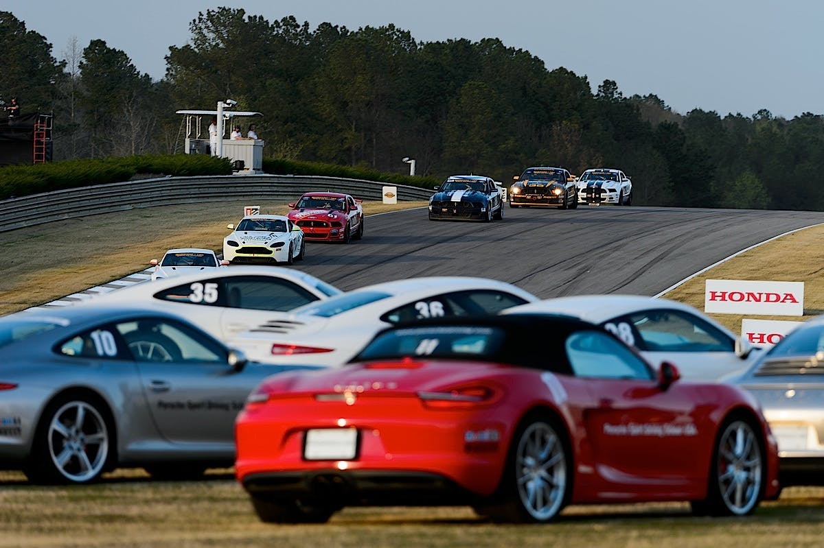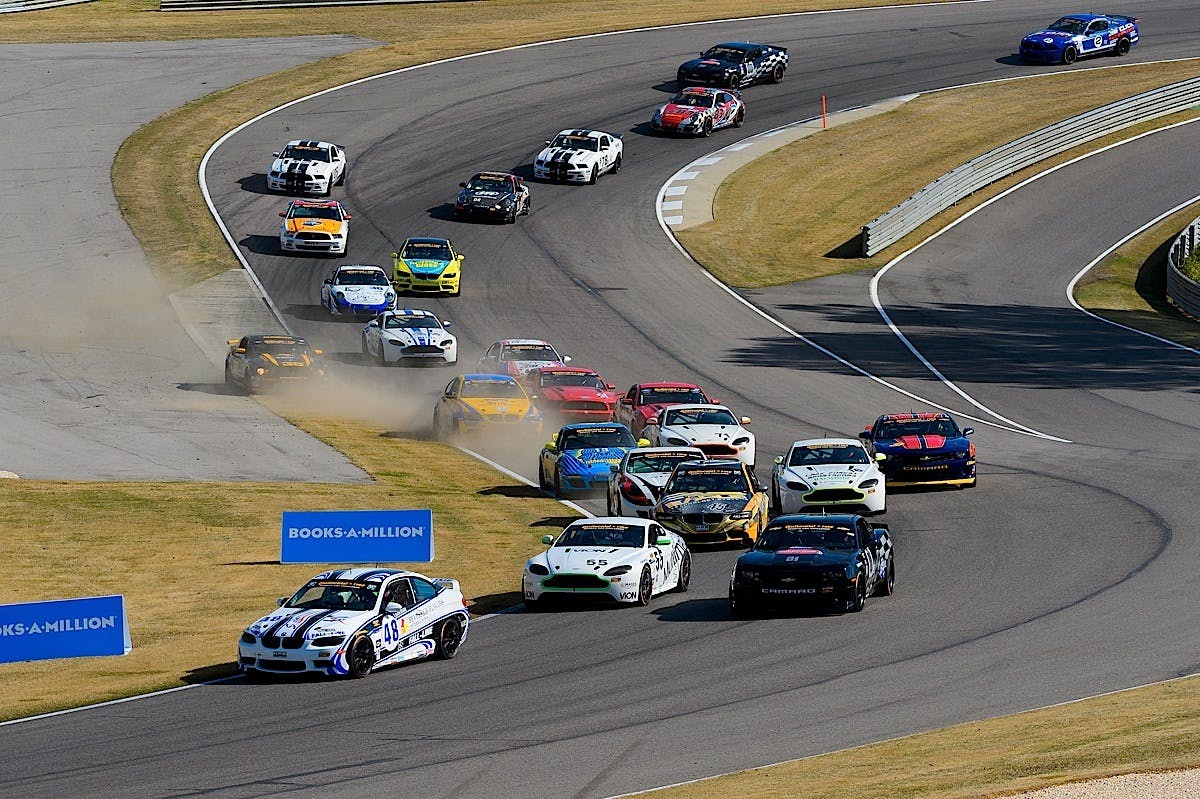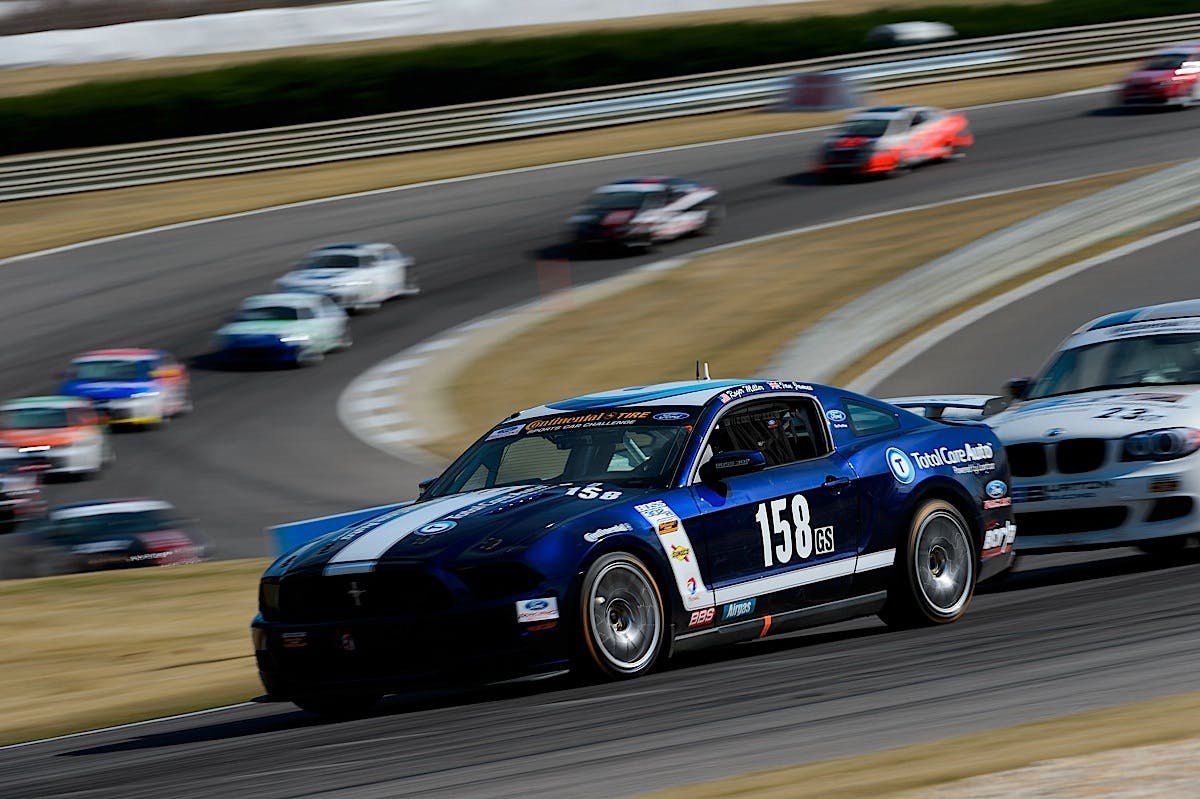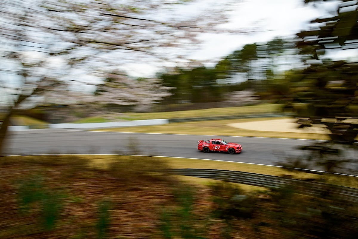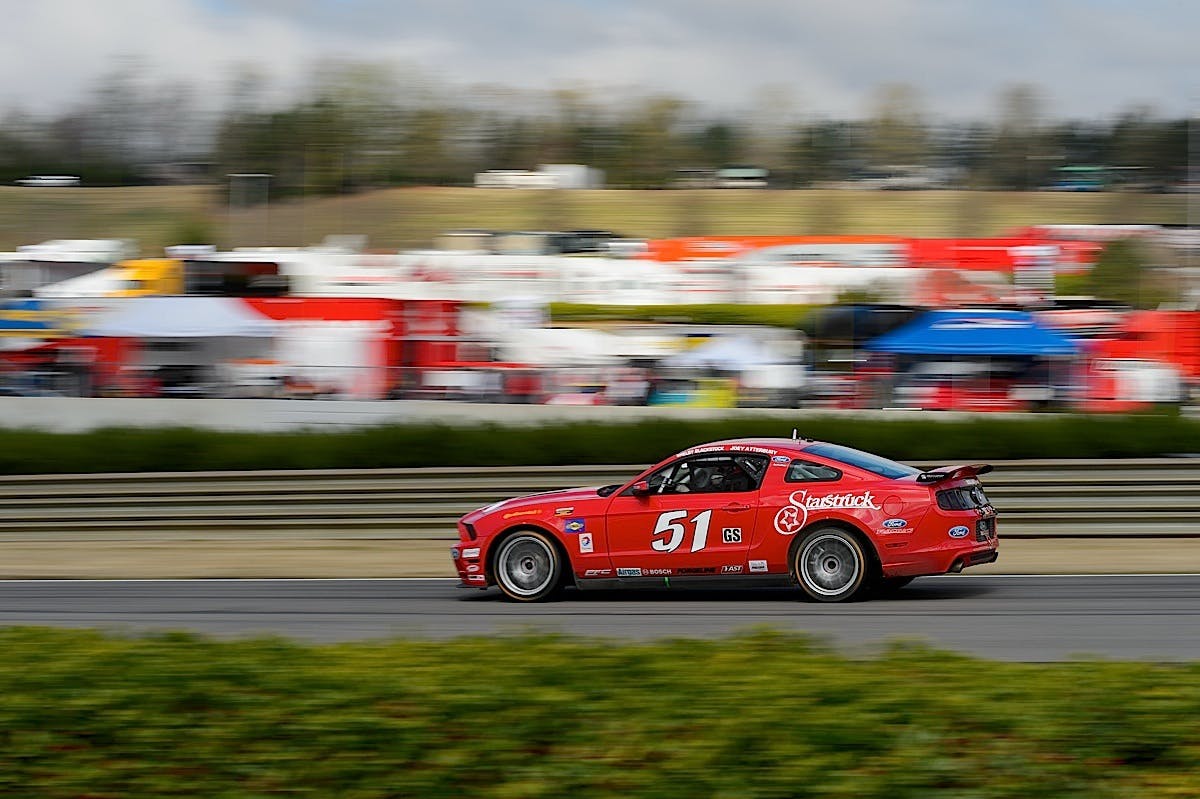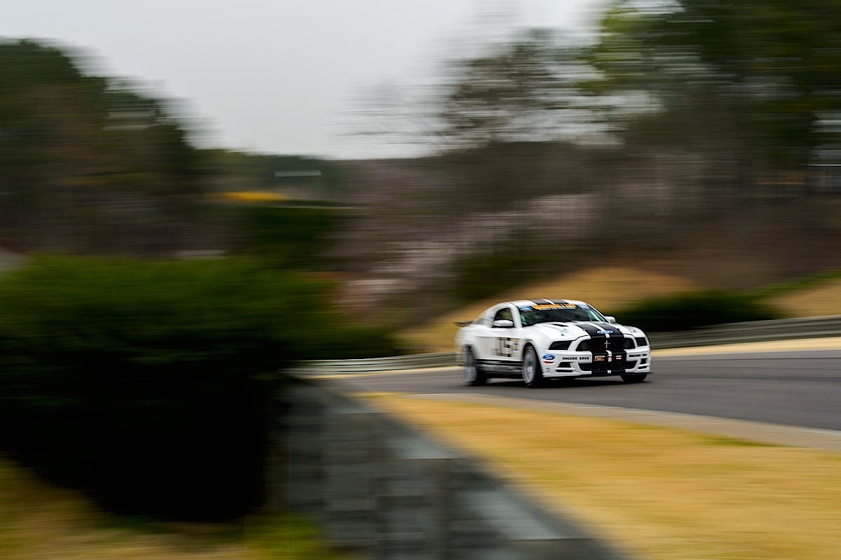 Barber Motorsports Park’s flowing layout was designed with motorcycle racing in mind. The short straights and long turns make passing in cars difficult, so netting a strong qualifying result was essential to securing a good race result. Thus, nobody was sandbagging during Friday morning’s qualifying session. 2010 series champion Charles Espenlaub laid down a 1:34.553 lap, which put his #48 Fall-Line Motorsports BMW in pole position, and set a new track record. Jade Buford’s two-race pole streak was snapped, though he was second quickest in the #55 Multimatic Motorsports Aston Martin Vantage. Al Carter in his #45 Fall-Line Motorsports BMW M3 rounded out the top three. Jack Roush Jr. was the highest-qualifying Mustang (11th), but nearly two seconds behind pole-sitter Espenlaub.