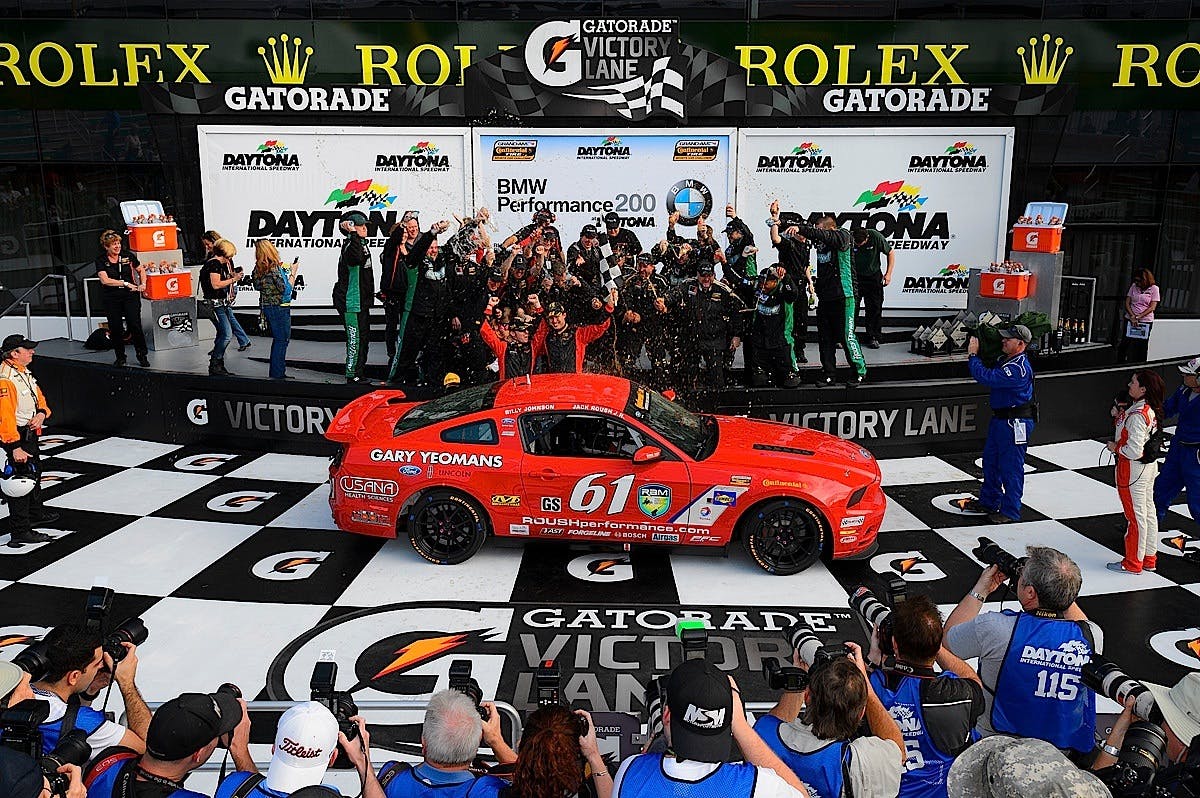 The season opened with the BMW Performance 200 at Daytona International Speedway on January 25th, where for the second consecutive year, Jack Roush Jr. and Billy Johnson claimed victory. The driving duo had a recent history of “zero to hero” performances at the famed 3.56-mile track, starting in 2011 when Jack Roush Jr. stuffed his Mustang in the tires with brake failure on the race’s second lap. Roush and Johnson redeemed themselves in 2012 with a solid victory, and followed it up with a repeat win in 2013.