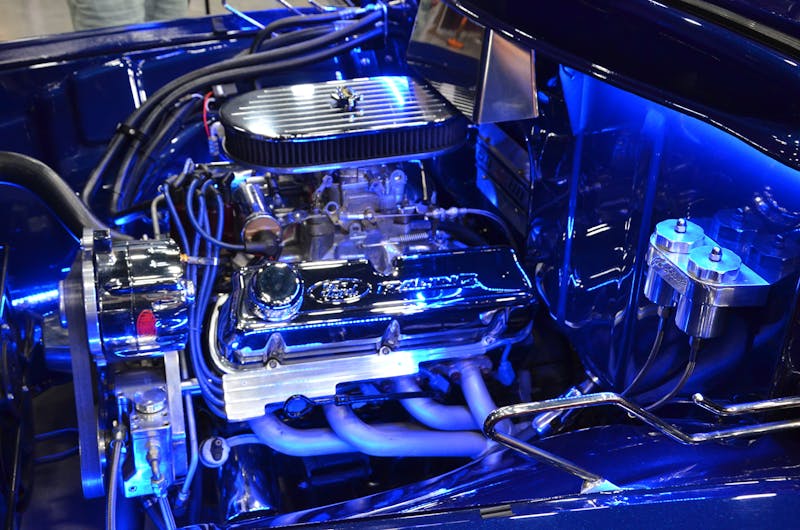 It was the old-school Centerline wheels that first drew our attention to the truck. The wide centerlines out back, with some Hoosiers mounted on them, give that fat rear fender the perfect, timeless look. Under the hood, vintage Cobra valve covers and a dual-carb setup top the Ford powerplant, which is nicely finished off with a modern serpentine belt arrangement. The huge Wilwood power booster on the firewall gives us a hint of modern braking capabilities, while the big MSD 6AL box on the firewall gives off those retro vibes. That theme held inside the truck, as the ratchet-style B&M shifter cleanly blended in with the leather, modern console, and other upgrades.