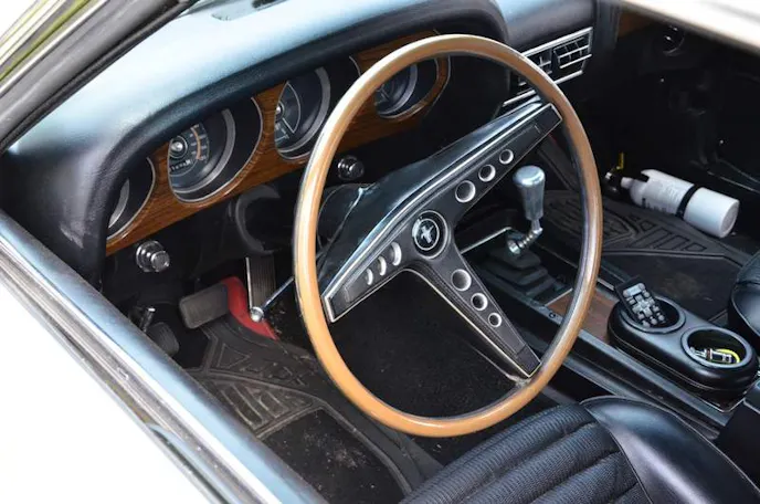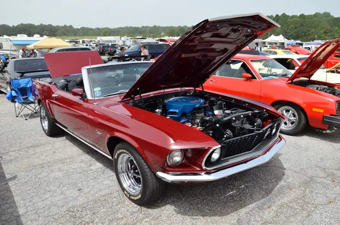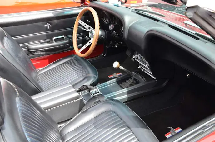This maroon 1969 Mustang belonging to Rick Hayslip certainly caught our eye at the NMRA car show. While early first generation Mustang convertibles seem to be a dime a dozen, it feels like we see a lot less of the '69-'70 convertibles. But beyond being super clean, check out that added bonus in the console — an original manual transmission car!