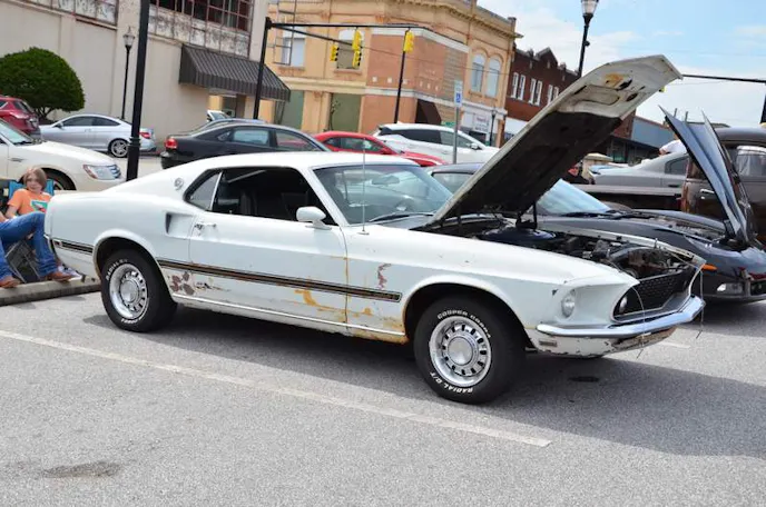 If we had to pick a favorite out of all the events, it would be this barn find 1969 Mach 1. The owner tells us the car sat in his grandmother's barn since the '80s, before he finally decided to get it out and get it running. He estimated that at least half of the locals at the event had probably stopped to try and buy the car at least once! One of the unique features of this car was an alarm system installed years ago. A huge siren under the hood is controlled by a key switch hidden in the air duct on the rear quarter panel. Maybe that is how the car survived all those years in Grandma's barn? While he tells us he has thought about painting the car down the road, for right now he is just enjoying it as is! It certainly draws plenty of attention with that old paint job!