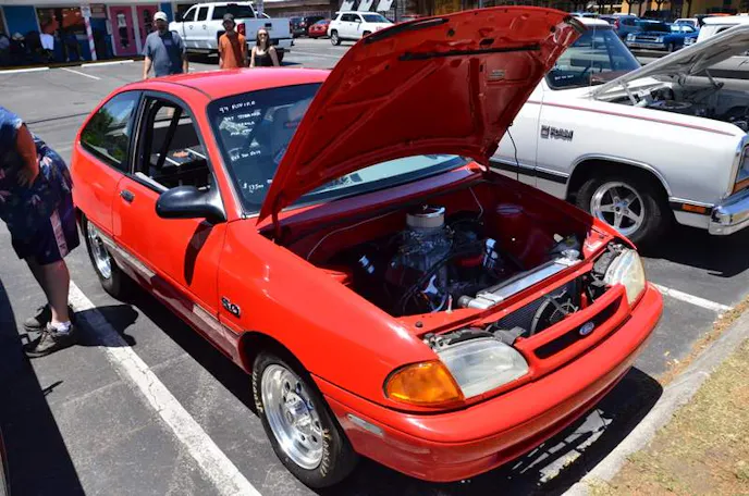 Pigeon Forge's Rod Runs are always good for a few crazy rides. How about this 1994 Ford Aspire with a 347 stroker under the hood? With big tires in the back, a roll cage, and just one race seat, this thing is obviously all business. Would you be brave enough to strap into this little red rocket?