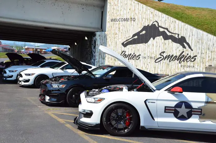 Our next stop was the "Farewell Corona Mustang Show" hosted by Steve Spangler of "Mustangs, Drives, and Events" to raise money for the local food pantry. The show was down behind Quaker Steak and Lube in Pigeon Forge, Tennessee — a spot that has become super popular for all sorts of different automotive events. Over 100 of the nicest Mustangs and Ford trucks the area had to offer showed up to send Corona off with a swift kick! We can only hope the end is really near!