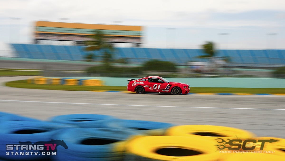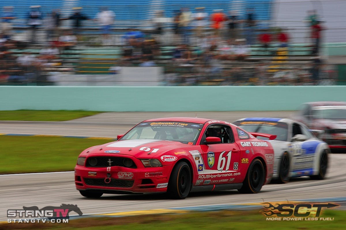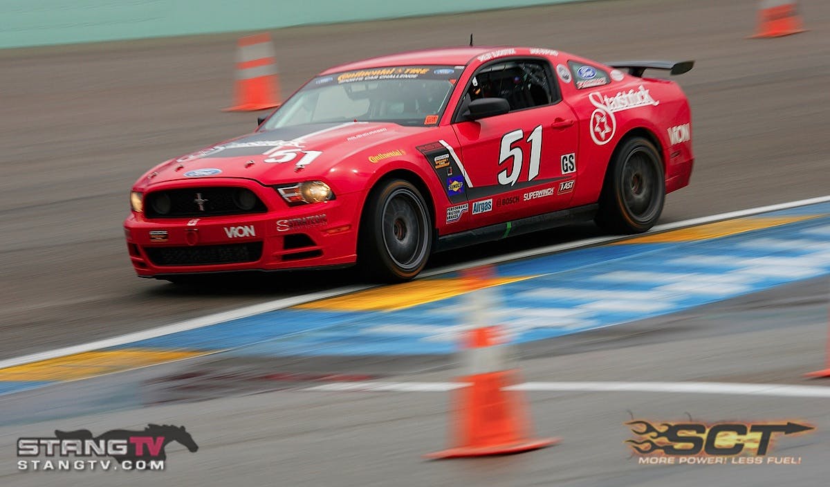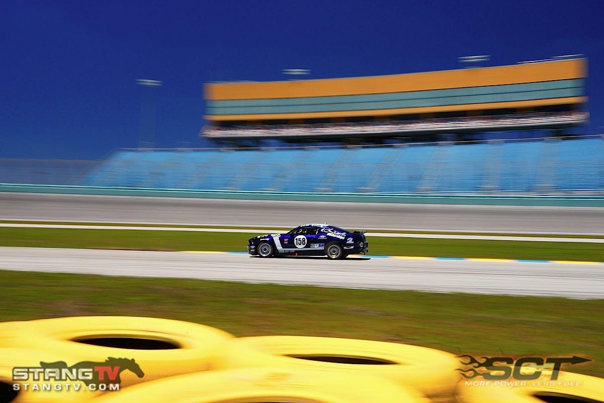 The 2.3-mile, eleven-turn Homestead Miami Speedway track is a “roval,” which combines parts of a high-banked oval speedway and an infield road course. The layout usually favors the big-engined cars such as five-liter Mustang Boss 302R and six-liter Camaro GS.R. In fact, Mustangs have had good success at the track, most recently with Jack Roush Jr. and Billy Johnson finishing second in 2011.