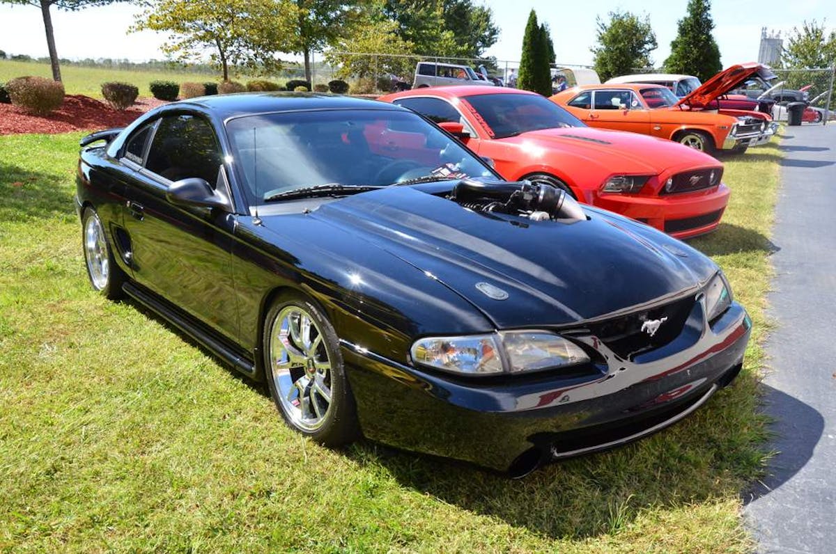 These two awesome, black 1993 Ford Mustang Cobras are at two different ends of the modification spectrum. On the left, Kevin Box's snake features every mod you can imagine. On the right, is a low-mile, all-original example. Personally, we want them both!